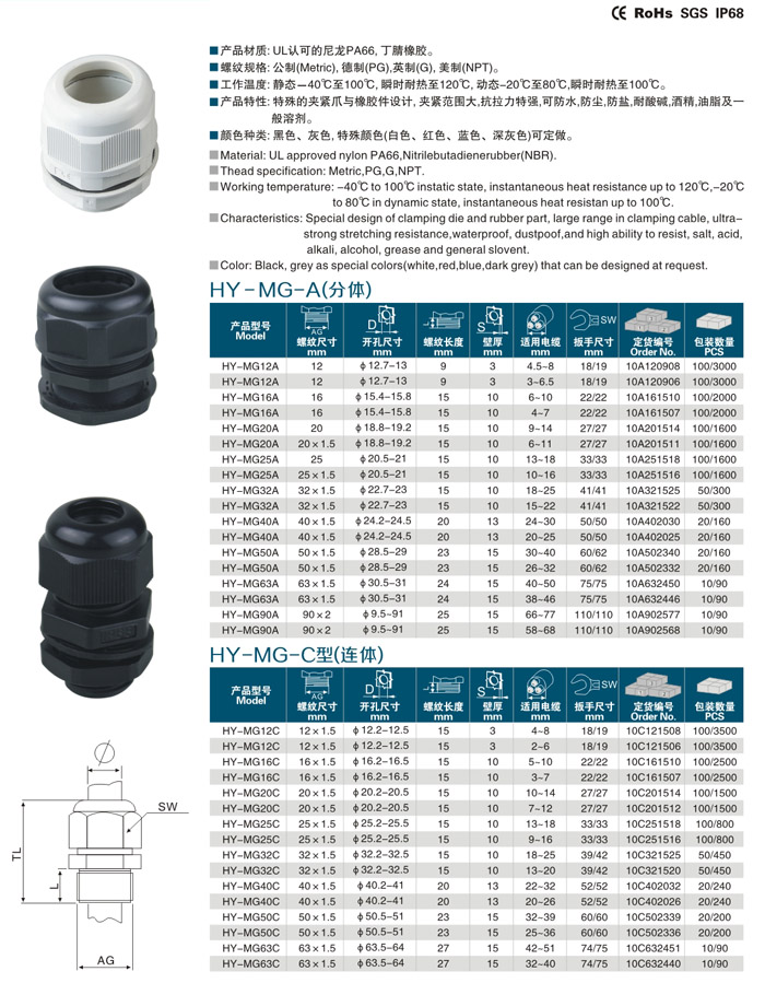 Plastic fixed cable waterproof connector HY-MG-A (fission)